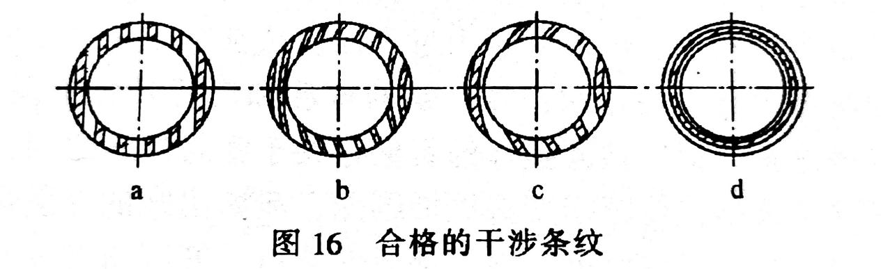 密封端面的平面度不同,條紋的種類也不同。圖16表示了幾種平面度合格的圖像,至于不合格的圖像各式各樣未予繪出。