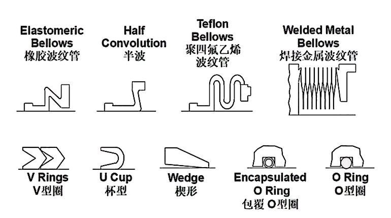 輔佐密封包含動、 靜環的密封圈, 大都做成O形圈、 V形圈、 矩形圈、 楔形圈或梯形圈。