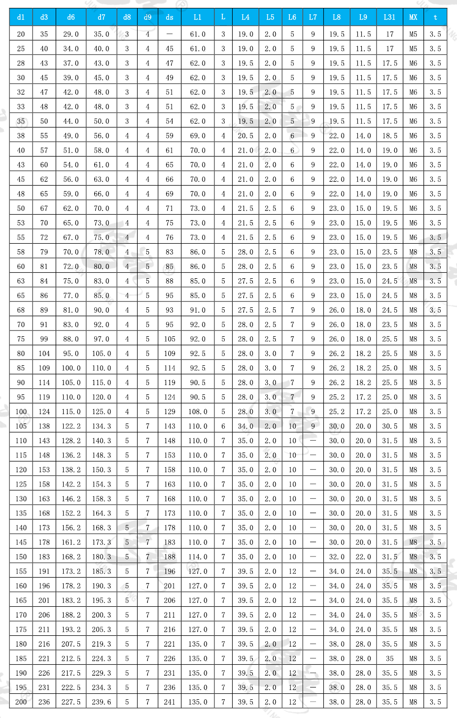 雙端面/非平衡型/任意旋向/多彈簧結構。 具有與“M7N”系列同樣設計性能,除驅動座的安裝長度外,其它安裝尺寸(d<100mm)符合 DIN 24960 標準。